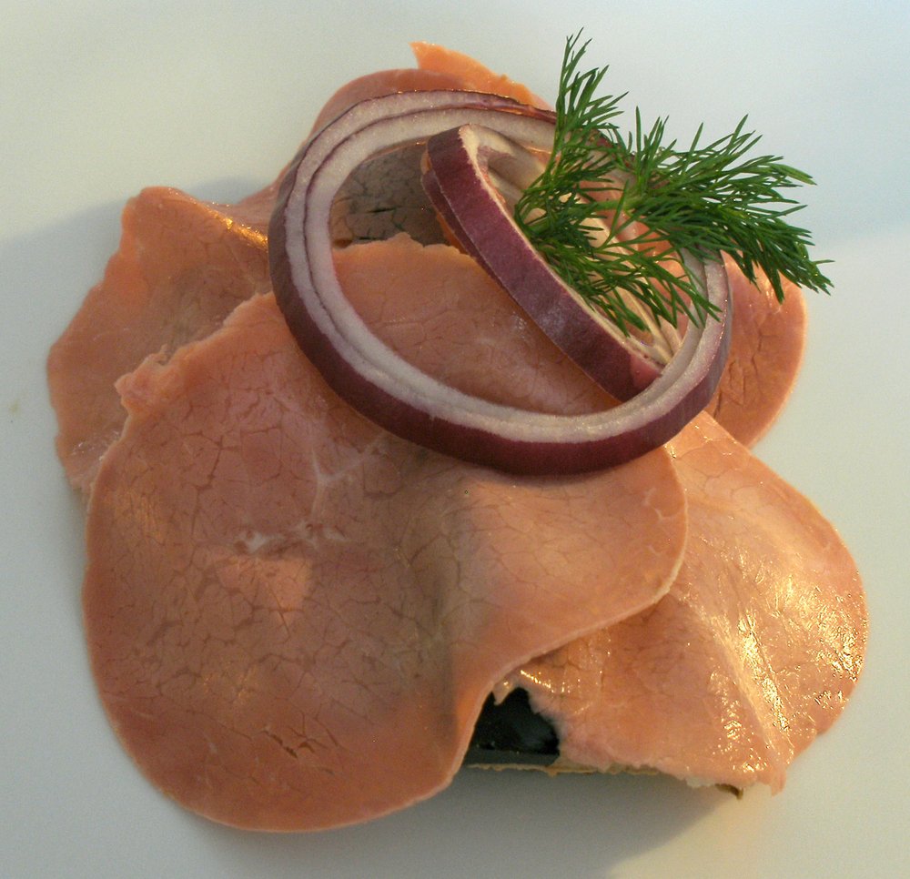 Der berühmte 'Nachtimbiss des Tierarztes' ist ein Klassiker des dänischen Smørrebrød. Auf kräftigem Roggenbrot vereinen sich Leberpastete, Pökelfleisch und Aspik zu einem herzhaften Genuss.
