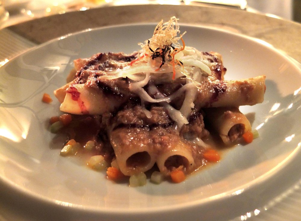 Mit Salz und Pfeffer abschmecken. Traditionell wird die Sauce mit Ziti-Nudeln serviert, wobei das Fleisch oft als zweiter Gang gegessen wird.