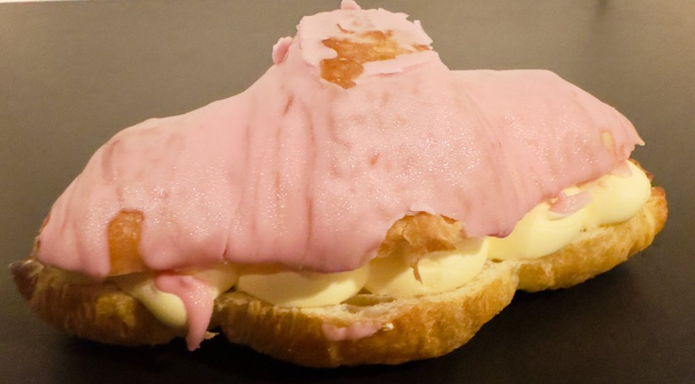 Eine trendige Gebäck-Fusion aus den Niederlanden, die das klassische Croissant mit dem beliebten Tompouce vereint. Knuspriger Plunderteig trifft auf eine reiche Vanillecremefüllung und die charakteristische rosa Glasur.