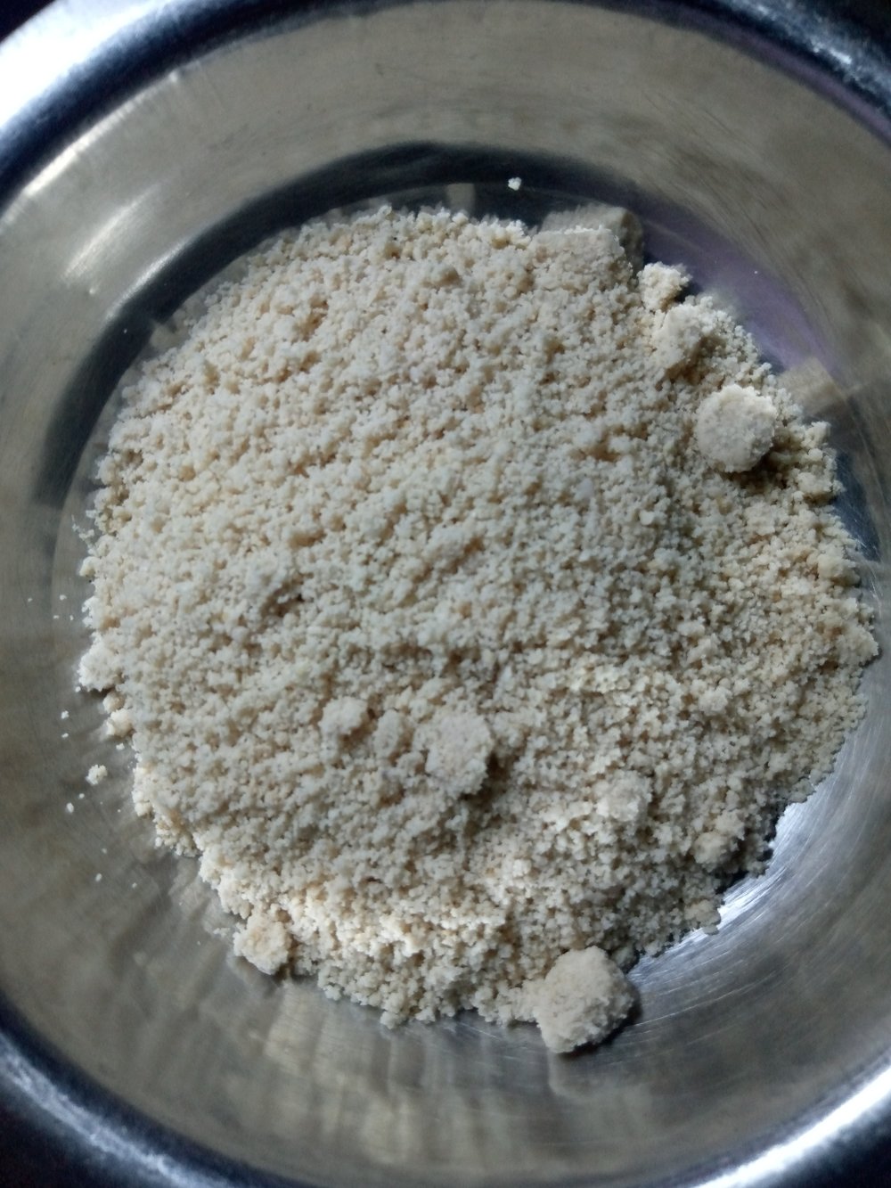 Das gemahlene Egusi in einer kleinen Schüssel mit ca. 100 ml Wasser vermischen, bis eine dicke Paste entsteht.