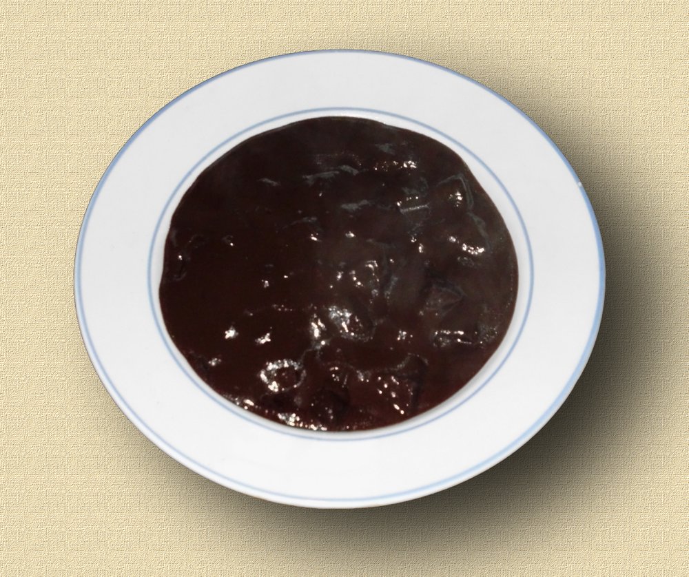 Ein traditioneller norddeutscher Eintopf aus Schweineblut, Fleisch und Wurzelgemüse mit charakteristischer süß-saurer Note. Dieses historische Gericht zur Resteverwertung wird typischerweise an Schlachttagen serviert.