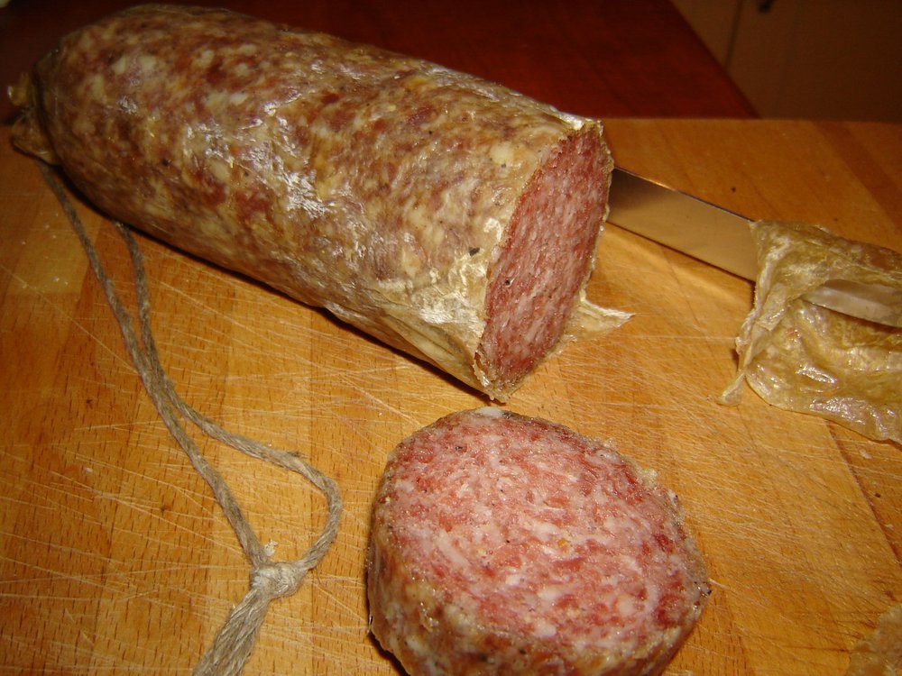 Eine klassische Rohwurst aus Schweinefleisch und Speck, verfeinert mit Rotwein, Knoblauch und typischen Gewürzen. Die Herstellung erfordert Sorgfalt und Geduld für die mehrwöchige Reifung.