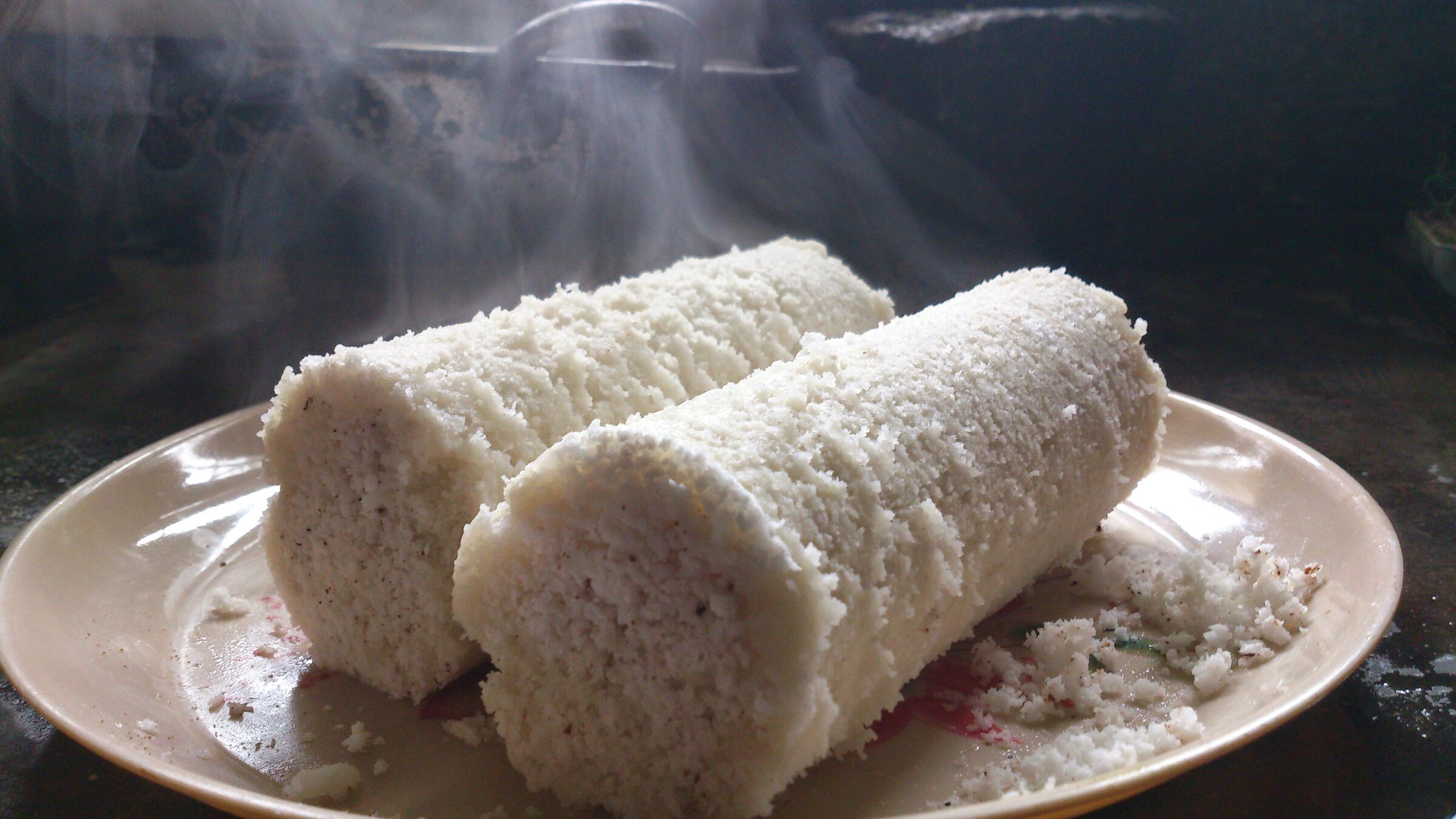 Original Kerala Puttu (Gedämpfter Reiskuchen mit Kokos)