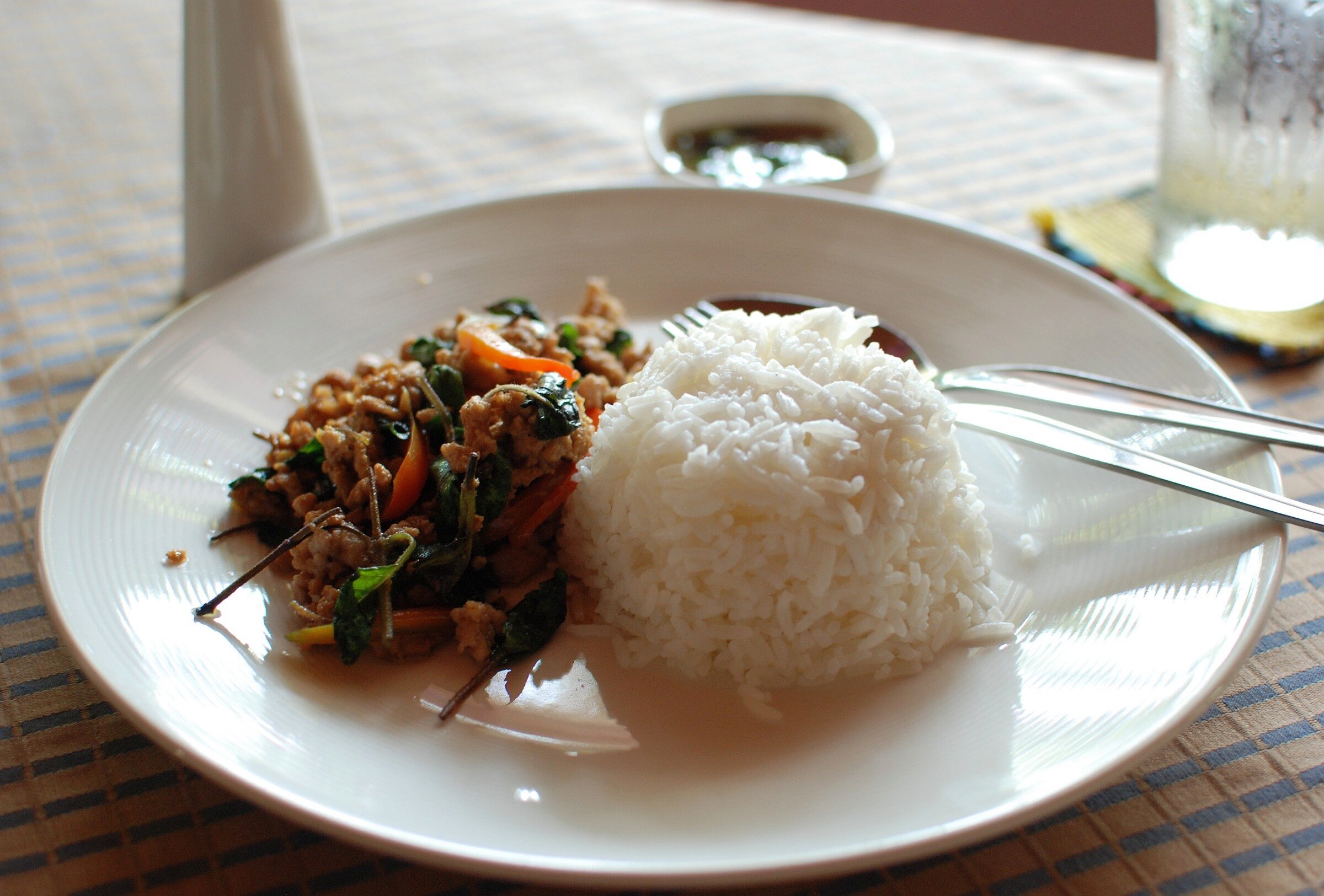 Wikipedia-Bild - Basil_fried_crispy_pork_with_rice_-_Chiang_Mai_-_2017-07-11_(002).jpg - Foto: Iudexvivorum - CC0