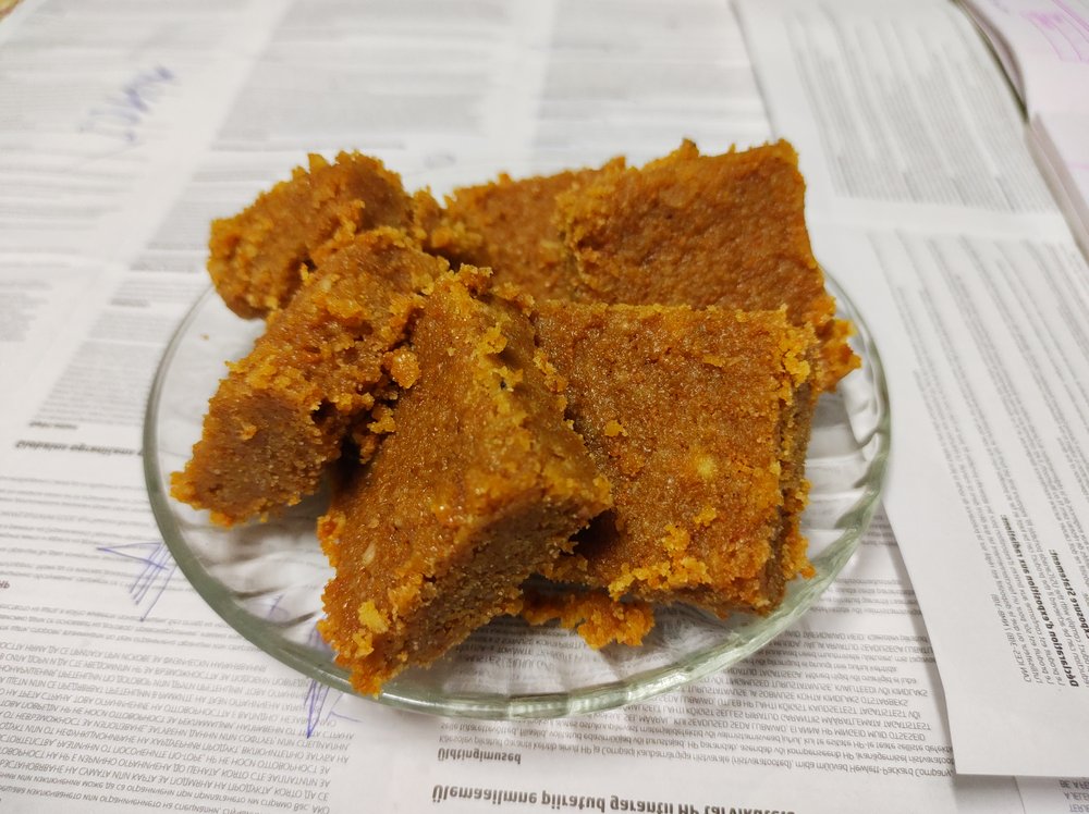 Ein traditionelles indisches Süßgebäck aus geröstetem Kichererbsenmehl, Ghee und Zucker, fein gewürzt mit Kardamom und mit Nüssen verziert. Die festliche Süßigkeit hat eine samtige, fudgeartige Textur und wird besonders bei Festen und Hochzeiten in Rajasthan gereicht.