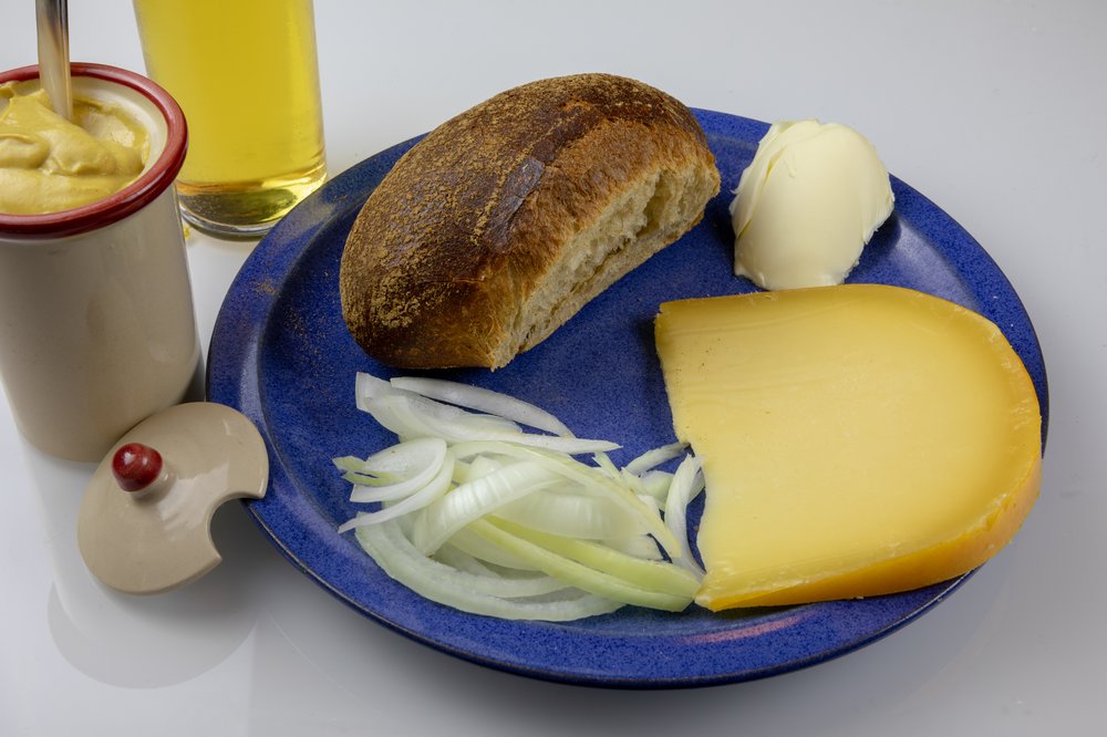 Der Halve Hahn ist der rheinische Kneipenklassiker schlechthin: Ein rustikales Roggenbrötchen, belegt mit dickem Gouda und garniert mit Senf, saurer Gurke und Zwiebeln. Trotz des Namens kommt dieses Gericht ganz ohne Hühnchen aus.