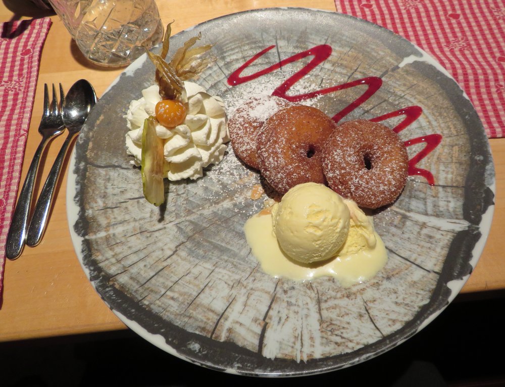 Traditionelle, in Ausbackteig frittierte Apfelringe, die herrlich duften und schmecken. Serviert mit Zimt-Zucker und einer selbstgemachten Vanillesauce sind sie eine beliebte Süßspeise aus dem Ländle.