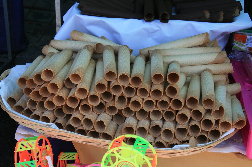 Barquillos, übersetzt 'kleine Boote', stammen aus Spanien und wurden traditionell von Straßenverkäufern (Barquilleros) in roten Roulette-Dosen verkauft. Sie sind besonders zu Weihnachten und bei Festen wie dem San Isidro-Fest in Madrid beliebt. Durch die spanische Kolonialzeit verbreiteten sie sich nach Lateinamerika und Asien – heute sind sie in Ländern wie den Philippinen oder Vietnam Kult-Snacks.