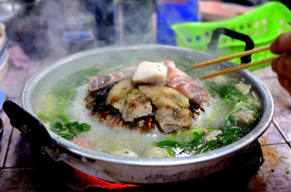 Ein aromatischer Street-Food-Klassiker aus dem Nordosten Thailands. Zartes Fleisch, Glasnudeln und frische Kräuter werden in einer würzigen Brühe im Tontopf am Tisch gegart und mit einem scharfen Dip serviert.