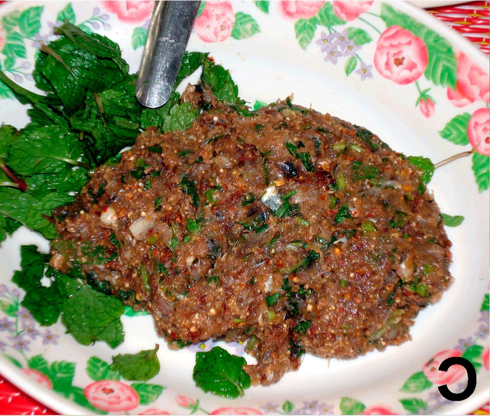 Das Nationalgericht aus Laos: Ein frischer, würziger Salat aus gehacktem Hähnchenfleisch, vielen Kräutern und geröstetem Reispulver. Traditionell wird dieser Fleischsalat lauwarm mit Klebreis serviert.