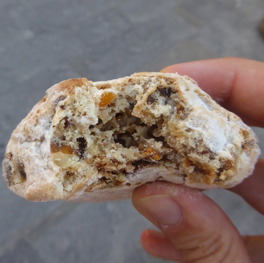 Diese traditionellen toskanischen Weihnachtskekse aus Siena bestechen durch ihre rustikale Form und den aromatischen Geschmack von Anis, kandierten Früchten und Nüssen. Sie haben eine feste, fast zähe Konsistenz und passen hervorragend zu einem Glas Dessertwein.