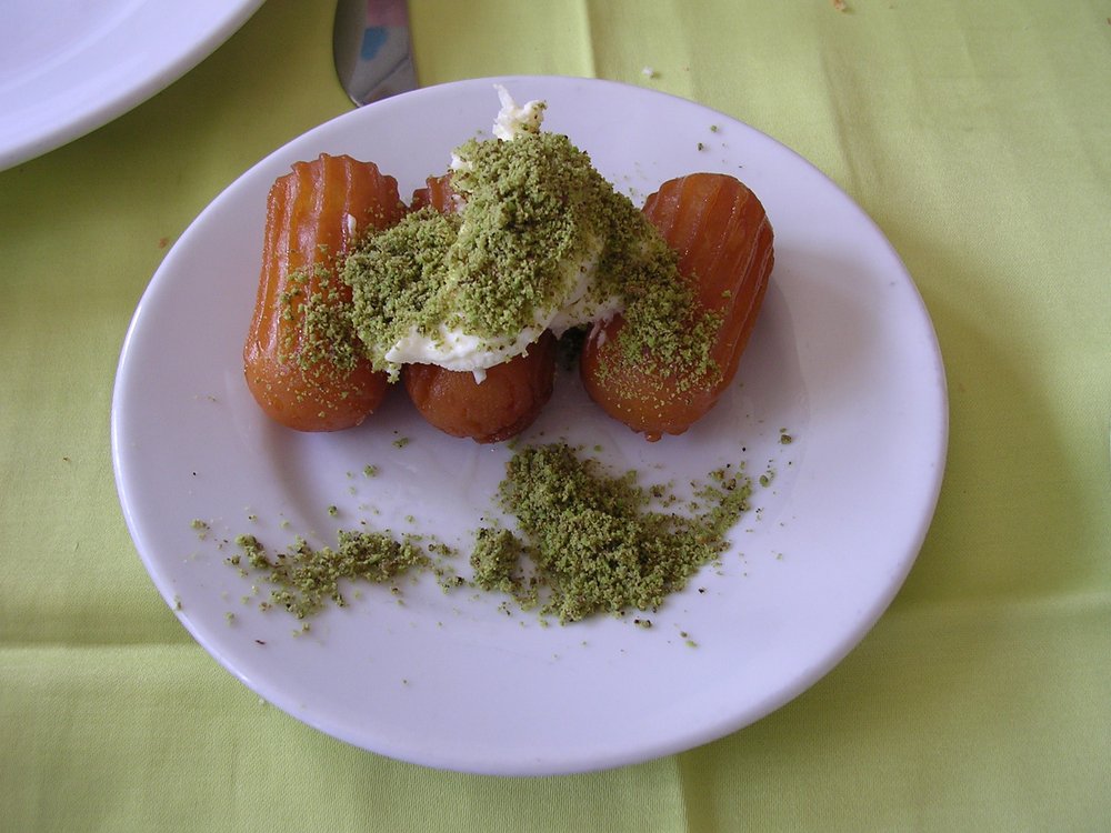 Tulumba with kaymak and pistachio – Foto: The original uploader was ChildofMidnight at English Wikipedia. (CC BY 2.0)