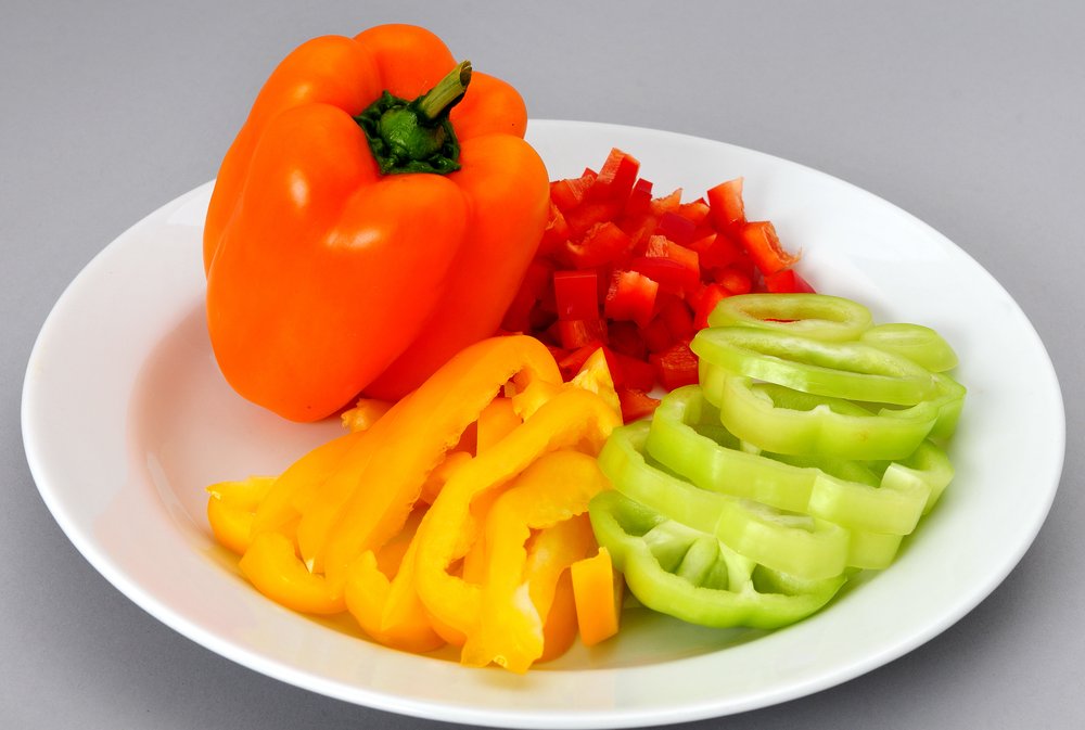 Die Paprikaschoten waschen, halbieren, entkernen und in etwa 1 cm breite Streifen oder Ringe schneiden.